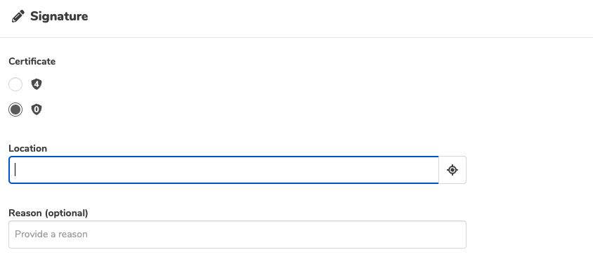 De juiste authenticator is het certificaat met het schild en het cijfer 4 erin. Je kunt het level 0 authenticator niet gebruiken om te ondertekenen met een Qualified signature of eSeal.