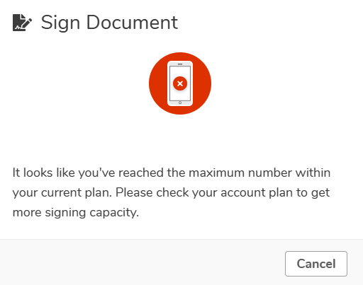 Oplossing: Log in op je account en koop extra handtekeningen.